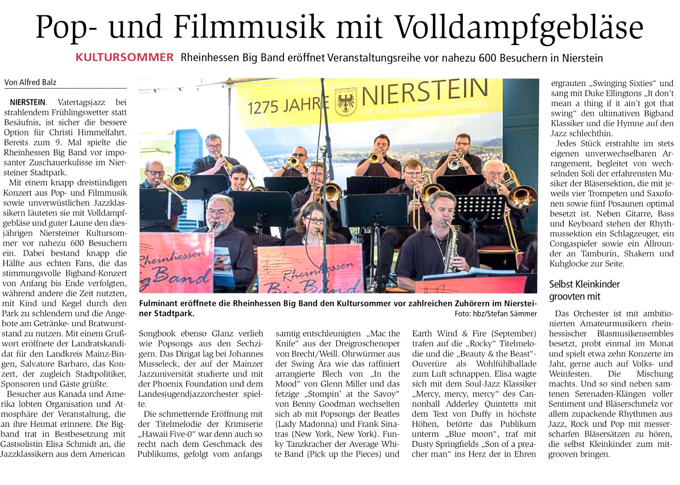 Konzentriert neigt Gregor Werum das Ohr in Richtung des von Klaus Hessel bedienten Pianos. Der junge Ingenieur hat viele Jahre im Ausland gelebt und gearbeitet, ist vor Kurzem in seine Heimat zurückgekehrt und hat schon immer gern Musik gemacht. Ein Schulfreund hat ihn auf die Rheinhessen Big Band aufmerksam gemacht. Zum ersten Mal ist er bei deren Probe zugegen, der letzten regulären vor dem Saisonauftakt in Nierstein. Also, zwei Schläge vor, und nochmal bitte… Allgemeine Zeitung, Rhein Main Presse, 06.05.2017